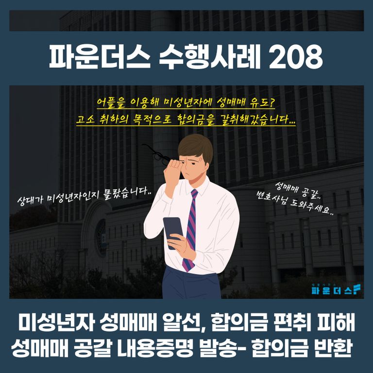 이에 상대는 의뢰인에 갈취한 합의금을 반환하였고, 의뢰인은 합의금 갈취로 인한 금전적 피해 및 성매매 고소 위기에서 벗어날 수 있었습니다.