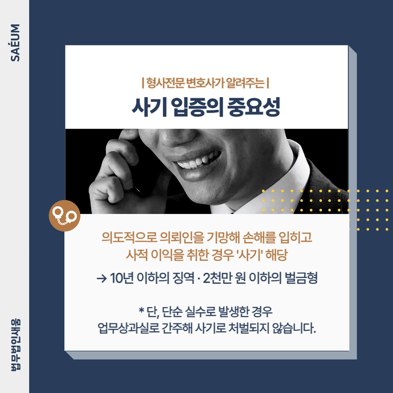 따라서 세무사에게 피해를 준 책임을 묻고, 처벌을 받게 하려면 기망행위가 있었음을 구체적으로 입증해야 합니다. 피해 사실뿐 아니라, 상대방의 고의적인 행위를 명확히 밝혀 사기죄가 성립하도록 하는 것이 중요합니다.