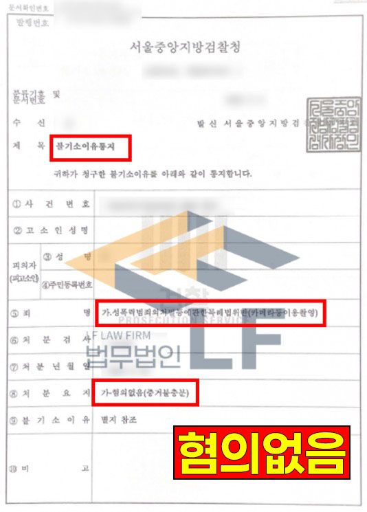 의뢰인의 촬영 결과물이 카메라등이용촬영죄에 해당하는지에 대한 사실을 다투기 위해 영상물의 각도와 함께 촬영된 다른 요소 등에 대한 상세한 설명을 담은 변호인 의견서를 작성하였으며, 조사에 입회하여 담당 수사관과의 면담을 통해 본 혐의가 성립되기 위한 구성요건에 해당하지 않음을 강력히 어필하였습니다.