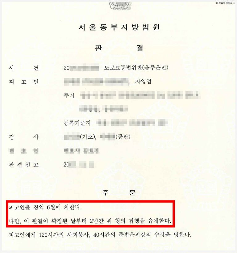 의뢰인과 변호인이 합심해서 최선을 다한 끝에 법원에서는 의뢰인의 다수 전력에도 불구하고 의뢰인에게 5번째 징역형의 집행유예를 선고하여 주었습니다.