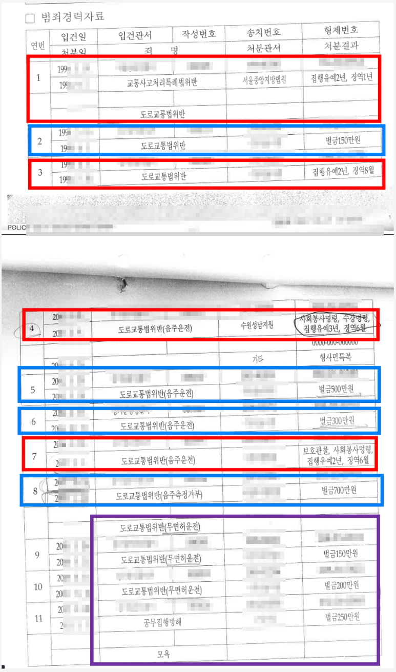 의뢰인은 1990년대 최초 음주 교통사고로 징역형의 집행유예를 선고 받은 이후 음주운전 또는 음주측정거부로 3차례 징역형의 집행유예를 선고 받은 전력이 있었고, 그 외에도 무면허 운전으로 처벌받은 전력도 다수 있었으며 공무집행방해 등으로 처벌받은 전력도 있었습니다.