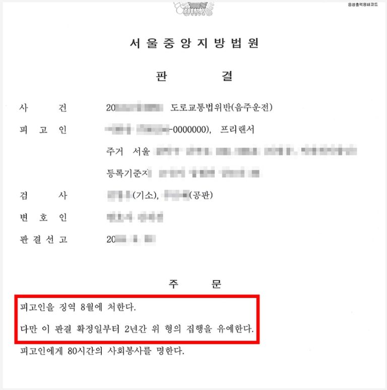 의뢰인의 경우 음주운전으로 이미 징역형의 집행유예를 받은 적이 있었고, 음주 수치 또한 매우 높았기 때문에 징역형의 실형을 선고 받아 구속될 가능성이 매우 높은 상황에 처해 있었습니다.