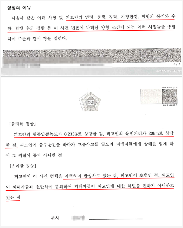 이러한 노력 덕에 재판부에서는 의뢰인에게 벌금형의 선처를 하여주었습니다.
