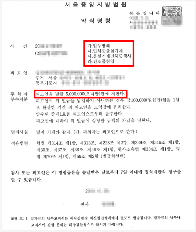 다행히 검사는 의뢰인을 약식기소(구약식 처분) 하였고 법원에서는 그대로 약식명령을 결정하여, 의뢰인은 다른 큰 불이익 없이 목표한 대로 벌금형으로 사건을 마무리할 수 있었습니다 .