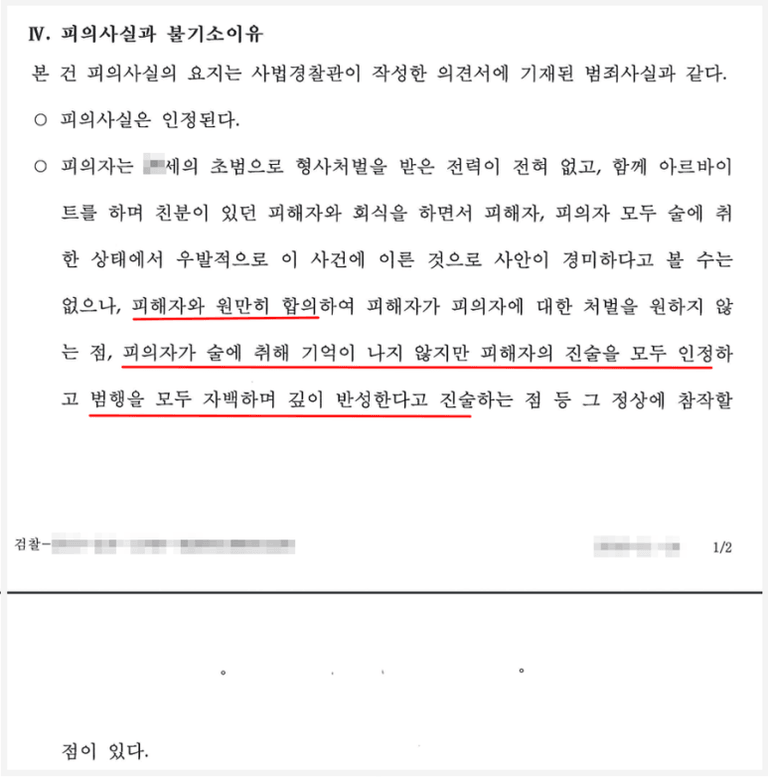 의뢰인은 술에 만취하여 기억을 하지 못하였지만 평소 피해자의 성품 상 거짓말을 할 것으로 생각하지 않았고, 또 피해자가 의뢰인을 무고할 이유도 없었기에 자신의 잘못을 인정하고 반성하고 있었습니다.