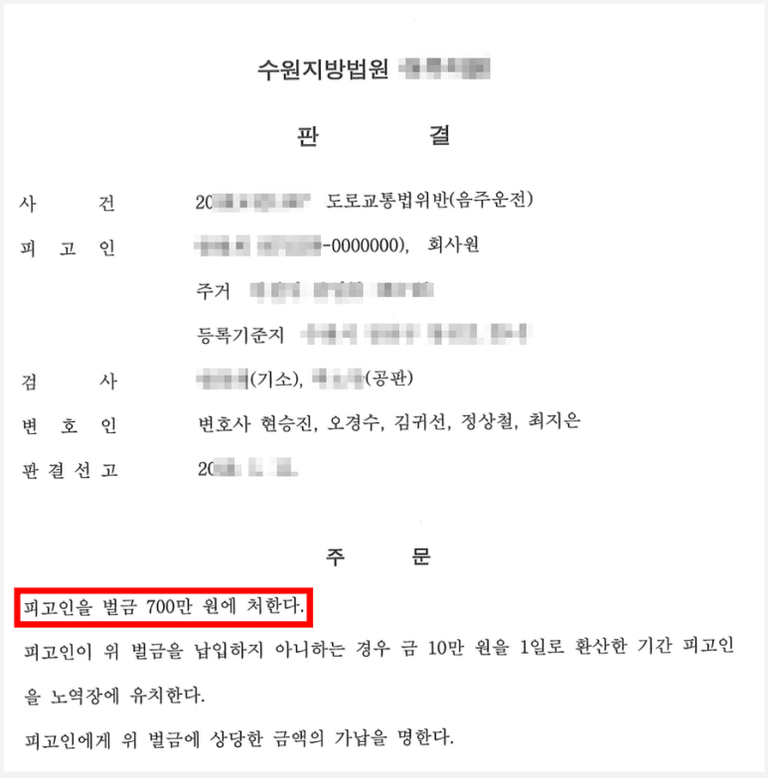변호인의 이와 같은 효율적인 변론 덕분에 법원에서는 의뢰인이 직장에서 해고되지 않을 수 있도록 벌금형의 선처를 하여주었습니다.