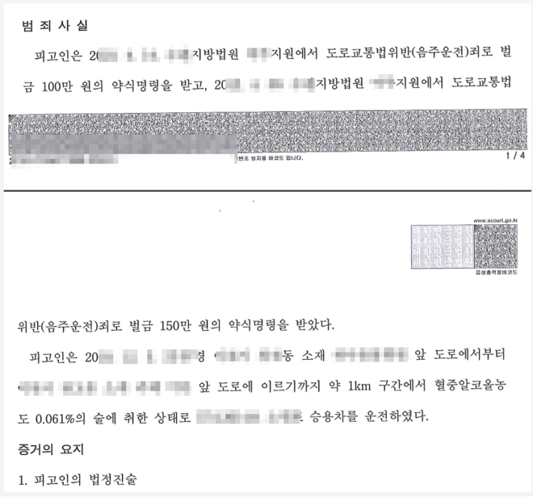 의뢰인은 과거 두 차례 음주운전으로 각 벌금형의 처벌을 받은 전력이 있었는데 또 다시 면허정지에 수치에 해당하는 술에 취한 상태로 운전을 하다가 적발이 되고 말았습니다. 세 번째 음주운전이었기 때문에 과거와 달리 약식기소 되지 않고 정식재판에 회부되어 법정에 서게 되었습니다.