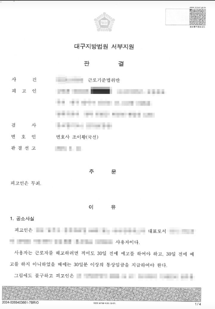 이에 피고인은 다음과 같이 "해당 근로자가 주장하는 해고가 있었다고는 보기 어렵다"는 이유로 재판부로부터 무죄를 선고받게 되었습니다.