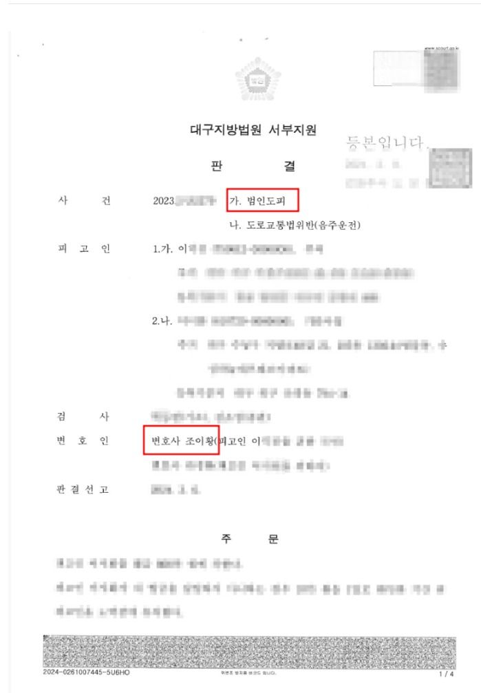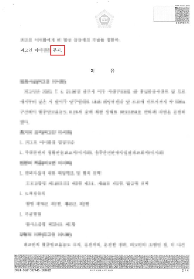 다행히도 조이황 변호사의 주장이 받아들여졌고 법원은 피고인에 대하여 무죄를 선고하였습니다.