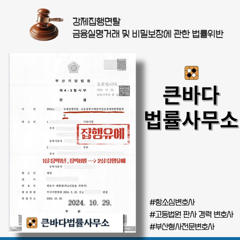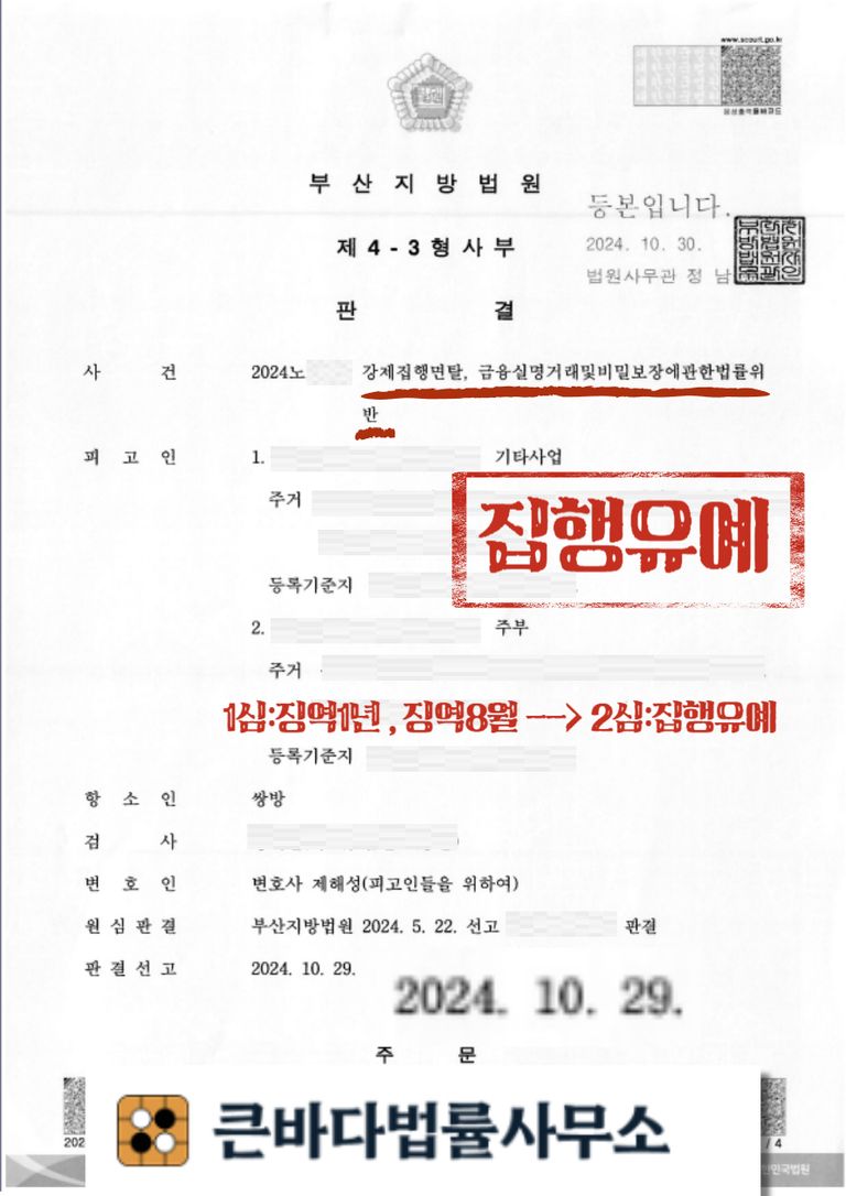 저희 큰바다법률사무소 대표변호사님의 조력으로 집행유예를 받았습니다.