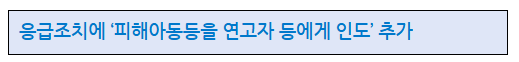 응급조치에 ‘피해아동등을 연고자 등에게 인도’를 추가하였습니다.