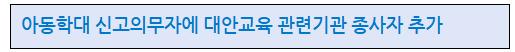 직접 교육·보호하는 지위에 있는 대안교육기관 등의 종사자에게도 신고의무를 부여하였습니다.