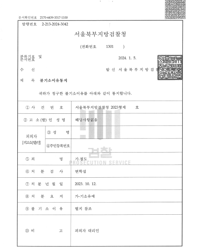 서울북부지방검찰청은 변호인의 의견을 받아들여 기소유예 처분을 내림. 당시 의뢰인은 취업 등 다양한 진로를 모색하고 있었는데, 아무런 전과 없이 사건을 마무리할 수 있었음.