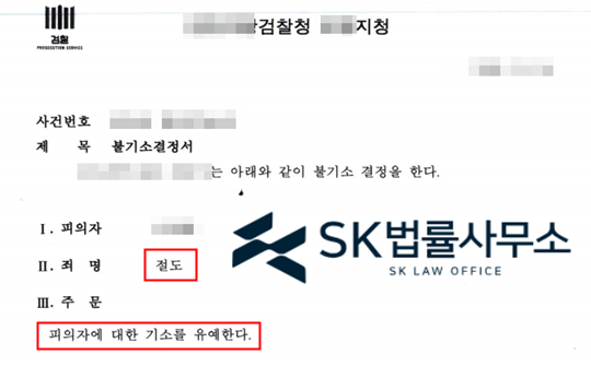 검찰은 본 변호인의 주장을 받아들여 절도 혐의에 대해 기소유예 결정하였습니다.SK 법률사무소의 강점