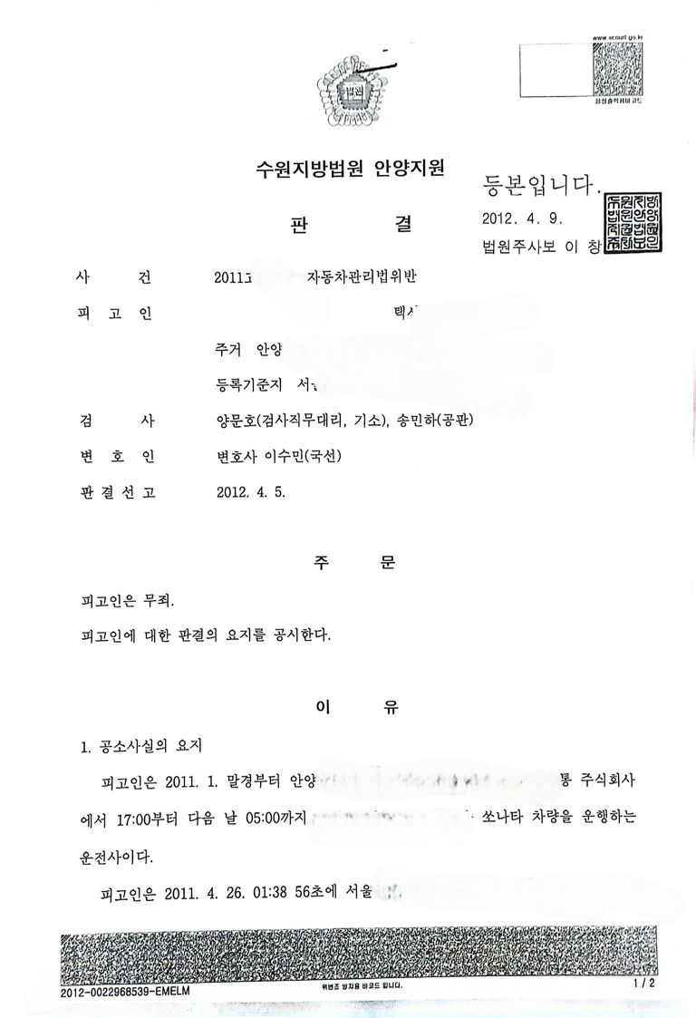 자동차관리법 위반 무죄