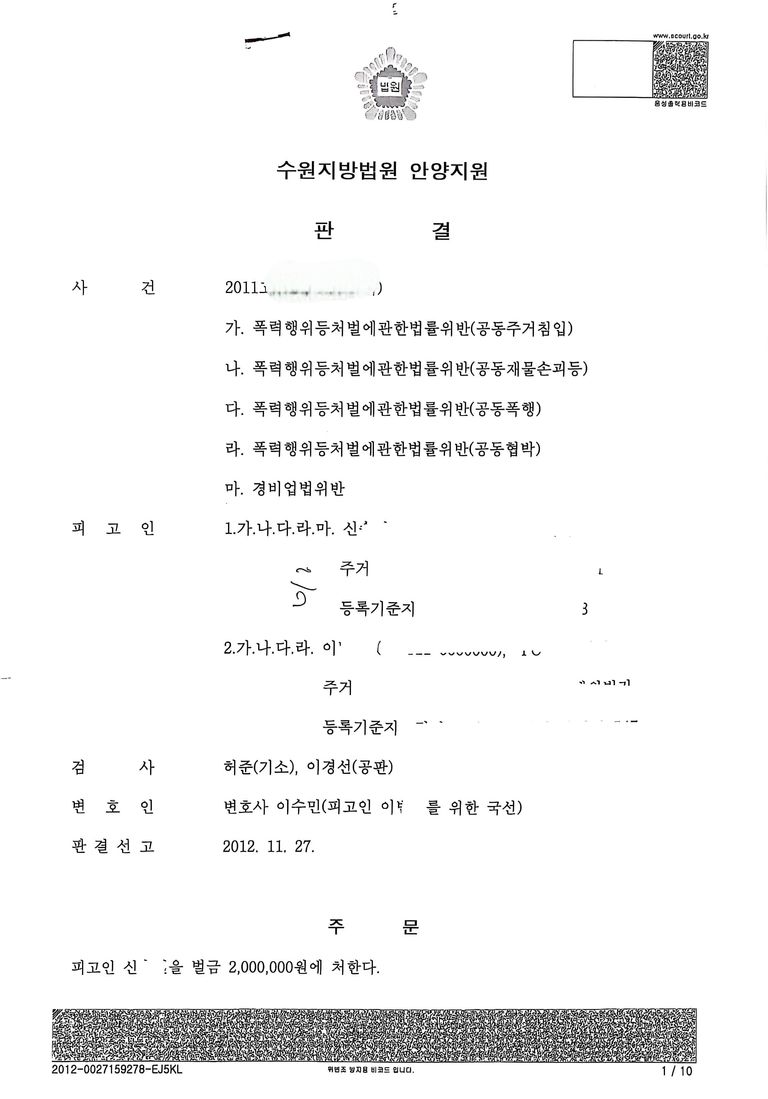 폭행/협박/상해 일반형사일반/기타범죄