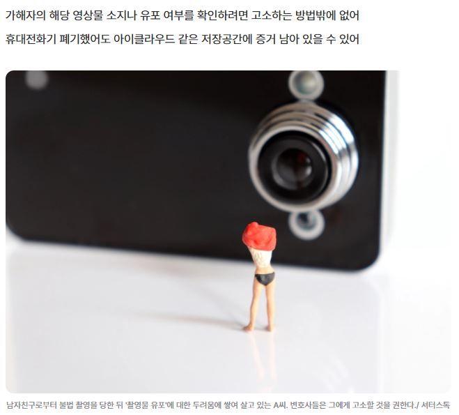 그러나 전 남자친구가 불법 촬영한 영상을 유포할지도 모른다는 생각에 지난 1년 내내 불안에 떨어야 했던 A씨. 그녀는 용기를 내 지금이라도 전 남자친구를 고소할 생각이다.