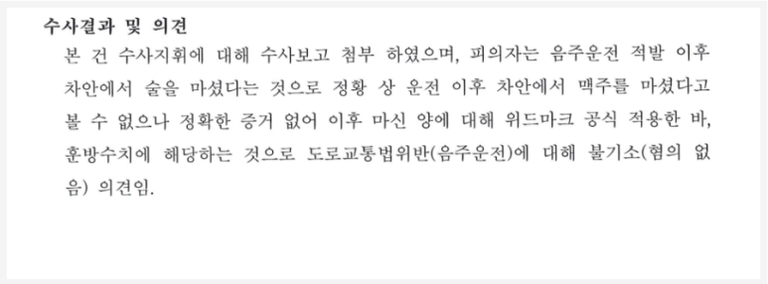 그러나 의뢰인이 추가로 술을 마셨다는 점을 입증할 만한 증거가 없었고, 오히려 경찰에서는 범행을 인정하지 않고 거짓말을 한다는 이유로 의뢰인의 죄질을 좋지 않게 보고 집요하게 의뢰인을 추궁하였기 때문에 의뢰인이 처벌을 피하기는 쉽지 않았습니다.