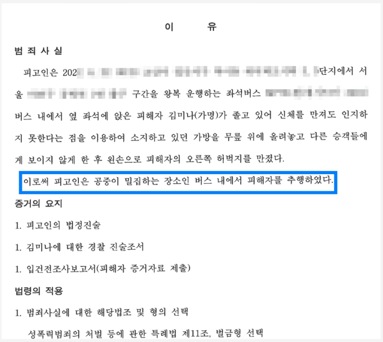 의뢰인은 이 사건으로부터 약 23개월 전 성폭력범죄의처벌등에관한특례법위반(공중밀집장소에서의추행)으로 검사의 기소유예 처분을 받았고, 같은 죄로 약 7개월 전 또 한 번의 기소유예처분을 받은 전력이 있었습니다. 그런데 의뢰인은 자신의 욕구를 자제하지 못하고 또 다시 버스에서 옆자리에 앉은 피해자의 허벅지를 만지는 추행을 하였습니다. 이후 피해자는 경찰서에 방문하여 신고를 하였고, 경찰은 CCTV, 교통카드 사용내역 등을 바탕으로 의뢰인을 피의자로 특정하여 입건하였습니다.
