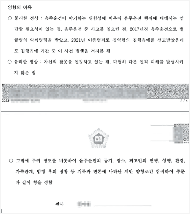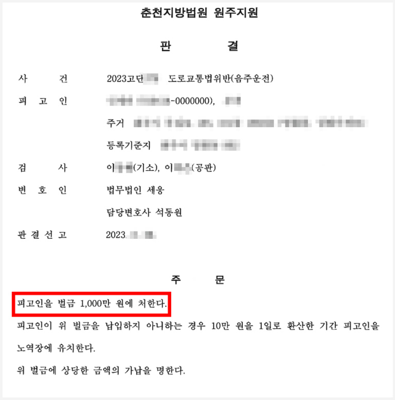 그리고 의뢰인이 집행유예 기간 중에 또다시 죄를 지은 것은 큰 잘못이지만 이종범죄로 인한 집행유예 기간 중이라는 점, 이에 대해서 의뢰인이 깊이 반성하고 재범하지 않기 위해 성실히 노력하고 있는 점 등을 비롯하여 의뢰인의 연령, 직업, 가족관계, 경제 상황 등 선처가 필요한 여러 사유를 잘 정리하여 주장하면서 벌금형의 선처를 요청하였습니다.