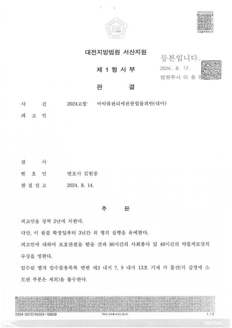 이에 피고인 또한 석방되고자 하는 절실한 마음을 가지게 되었고, 진정성을 담아 반성문을 작성해 주는 등 본 변호인과 함께 노력하여 대마 구매 및 흡연 혐의만 인정되어 집행유예로 사건을 잘 마무리할 수 있었고, 검사의 항소 없이 집행유예로 사건이 잘 마무리 되었습니다.
