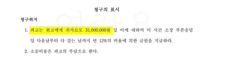 그 내용은 자신이 만나오던 사람의 배우자가 원고가 되어 자신에게 위자료 3100만 원을 청구한다는 것이었습니다.
