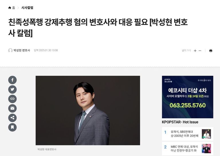 박성현 변호사는 “이렇게 친족성범죄에 연루될 경우 단순한 형사처벌에 그치지 않고 신상정보 공개나 취업제한 같은 부수처분으로 인해 일상생활에서 큰 불이익을 받을 수 있다”며, “만약 억울하게 해당 혐의에 연루되었다면, 사건 초기 단계부터 적극적으로 대응하는 것이 필수적”이라고 조언했다.