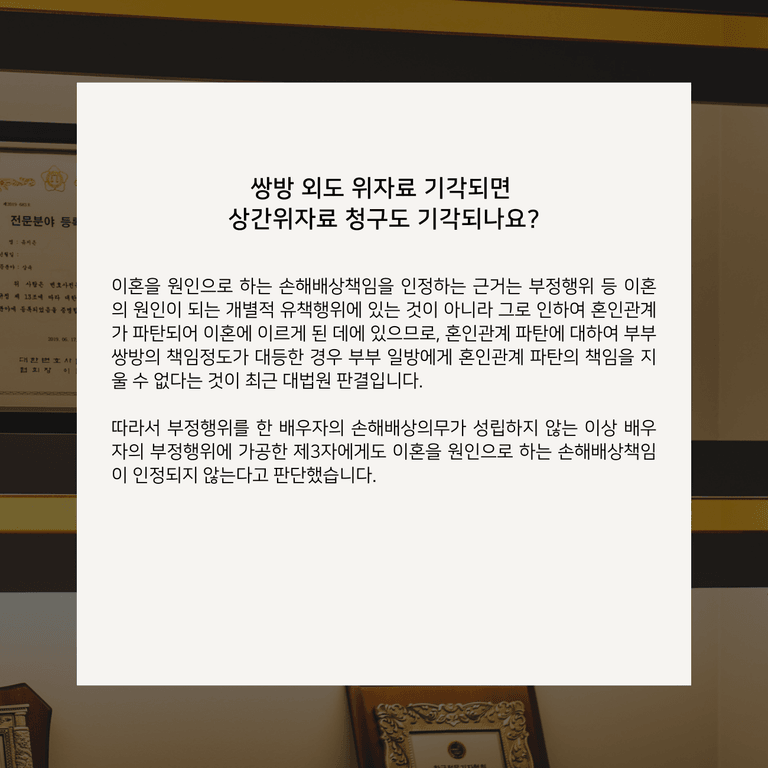 이혼소송에서 쌍방 외도 위자료 기각되면 상간위자료 청구도 기각되나요?