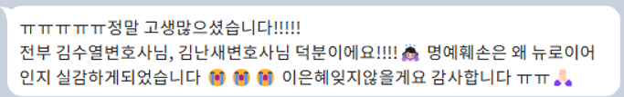의뢰인분의 감사인사. 마음고생 많으셨는데 평안한 일상으로 돌아가시길 바랍니다