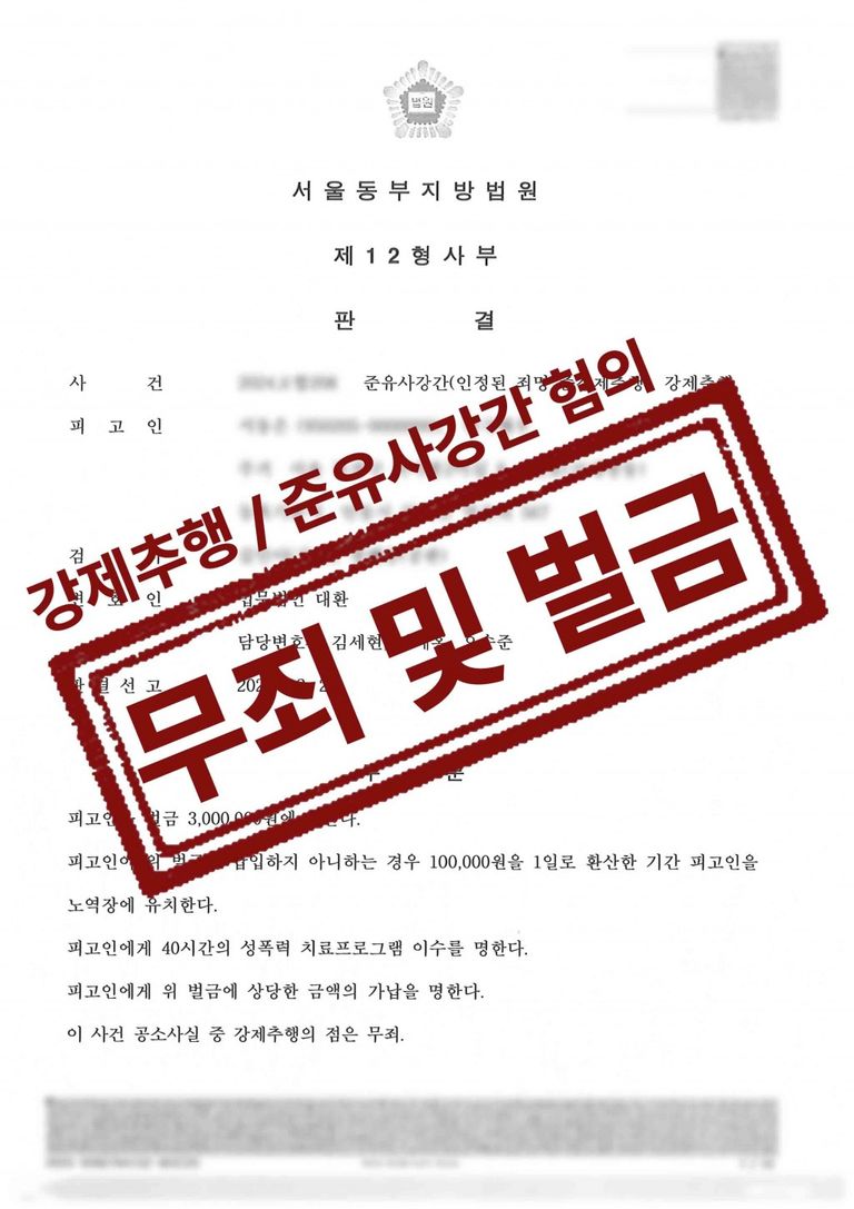 다만, 준유사강간에 대해서는 인정할 수 없었습니다. 증거도 없었으며 피해자의 진술에서도 준유사강간에 대한 진술이 초기에는 전혀 없었고 나중에서야 두루뭉실하게 이야기한 정도이기에 구체적으로 기억하지 못하고 증거 또한 없으므로 준유사강간에 대해서는 무죄를 주장하였습니다.