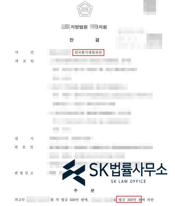 의뢰인께서는 외국환업무 등록 없이 수십회에 걸쳐 중국 계좌로 수억원의 자금을 송금하며 수익을 얻은 혐의로 기소되어 저희 로펌을 찾아주셨습니다.
