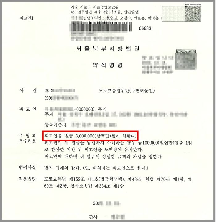 한편 의뢰인에게 음주운전 전과만 있는 것이 아니라, 이미 무면허 운전으로도 2회 벌금형의 처벌을 받은 전력이 있었습니다.