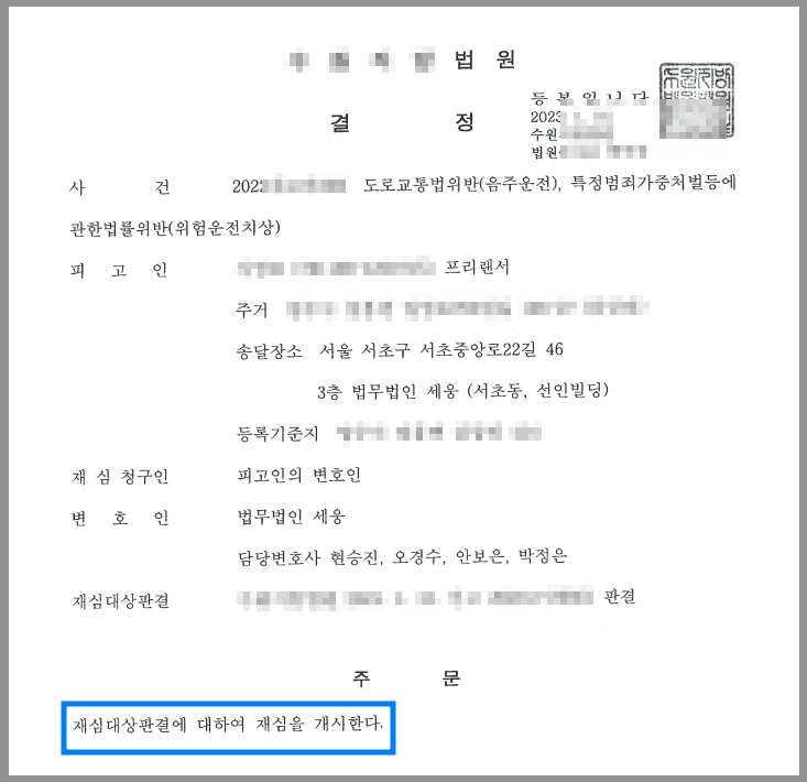 *의뢰인의 과거 판결에 대한 재심 개시 결정