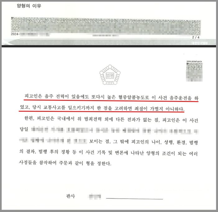 이 사건으로 인해 의뢰인이 실형을 선고받고 구속될 가능성은 없다고 보아도 무방하였으나, 의뢰인은 10년 내에 음주운전으로 2번째 적발된 것이고 수치도 낮지 않았으며 검사 역시 구공판 처분에 이어 징역형을 구형한 상황이었기에 징역형의 집행유예가 선고될 가능성이 높았습니다.
