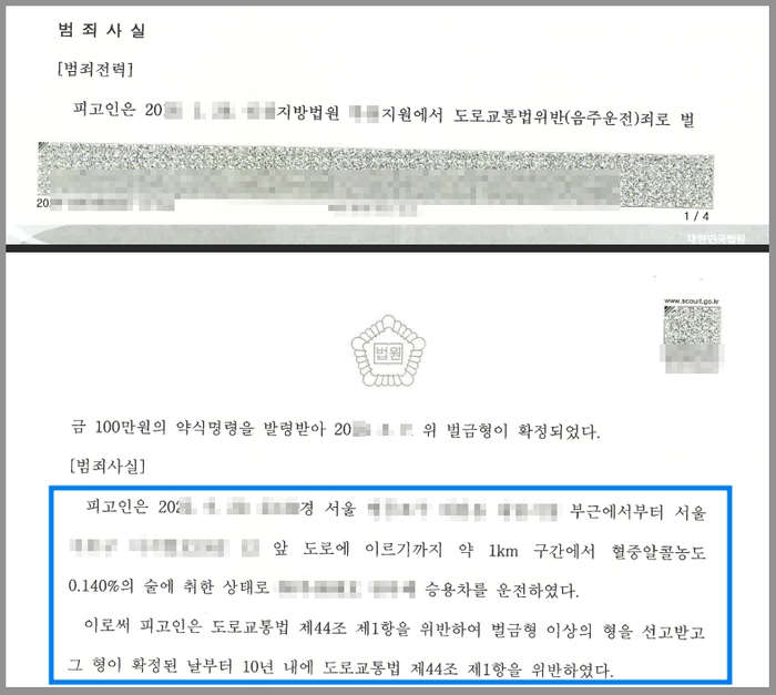 그런데 의뢰인은 약 5년 반 전에 음주운전으로 인해 벌금형의 처벌을 받은 전력이 있음에도 또 다시 혈중알코올농도 0.140%의 술에 취한 상태에서 운전을 하다가 적발되었고 재판에 넘겨졌습니다.
