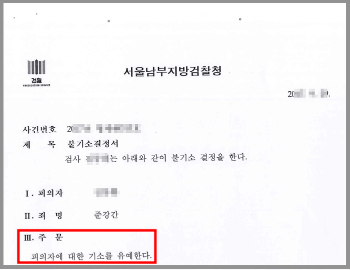 준강간죄는 법정형으로 3년 이상의 징역형만 규정되어 있는 무거운 범죄임에도, 검사는 의뢰인의 여러 유리한 정상을 참자하여 기소유예 처분을 하였습니다.