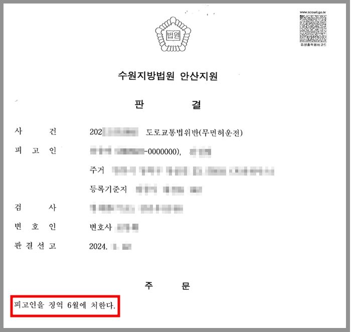 하지만 의뢰인의 경우에는 이미 무면허운전으로도 2회 처벌 받은 전력이 있었고 다른 전과도 다수 있었기 때문에 원심 재판부가 선고한 징역 6월은 그리 무겁다고 보기 어려운 것이었습니다.