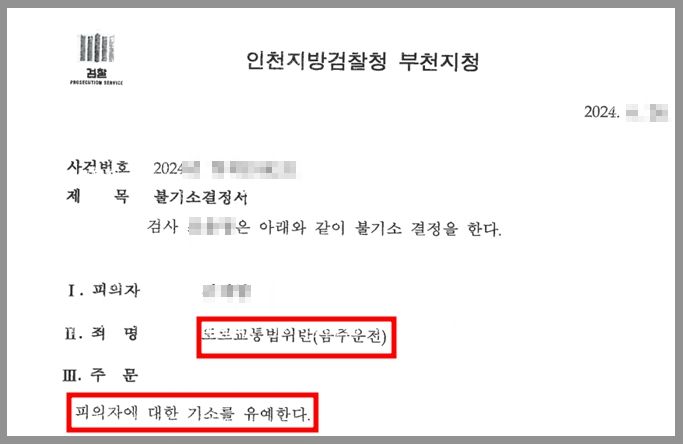 ※ 검사의 기소유예 처분을 받게 되면 2회 이상의 음주운전으로 면허가 취소되더라도 2년의 결격기간이 적용되지 않고 곧바로 면허시험에 응시하여 면허를 취득할 수 있습니다.