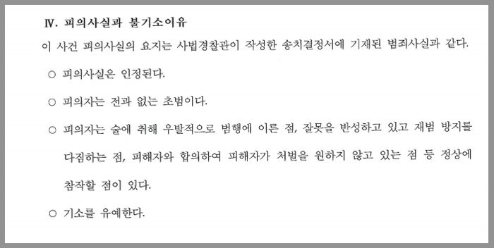 검사는 이와 같은 점들을 적극 수용하여 의뢰인에게 기소유예 처분을 하였습니다.