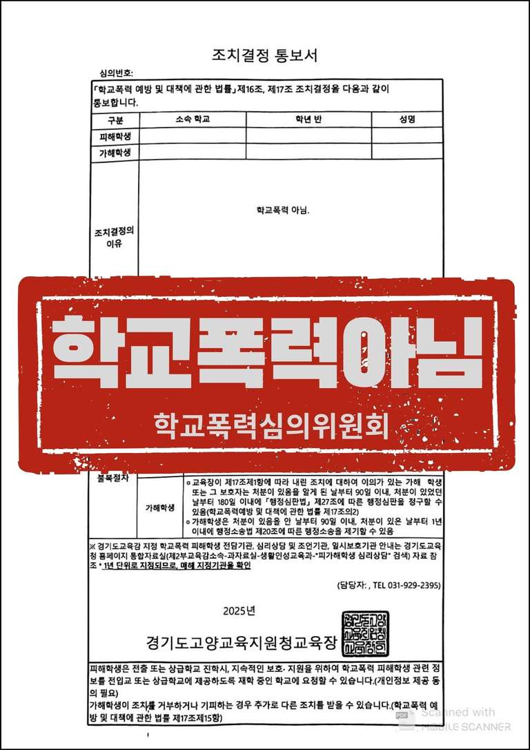 일반적으로 상대학생이 병원에 입원을 할 정도로 다치게 하였다면 학교폭력 가해학생에 대한 조치를 피하기는 힘들다고 보아야 합니다. 그러나 이번 사건에서는 학교폭력이 아니라는 결정을 받을 수 있었습니다.