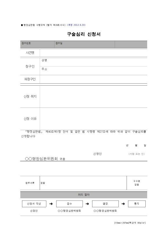 행정심판 구술심리신청서 작성시 청구인은