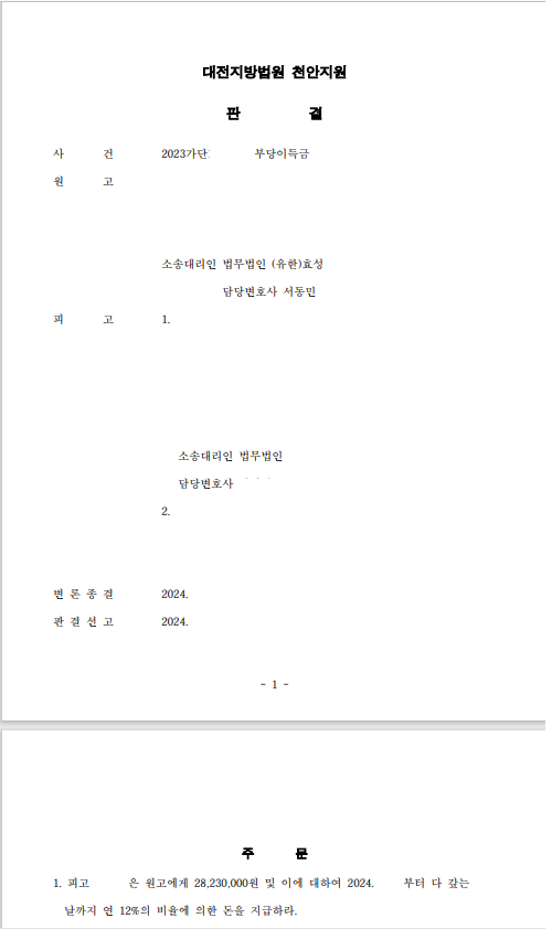 저는 즉각 입금 받은 자를 피고로 하여 민사소송 부당이득반환청구소송을 제기하였고 법원은 원고 승소 판결을 선고하여 의뢰인은 피해액을 반환받았습니다.