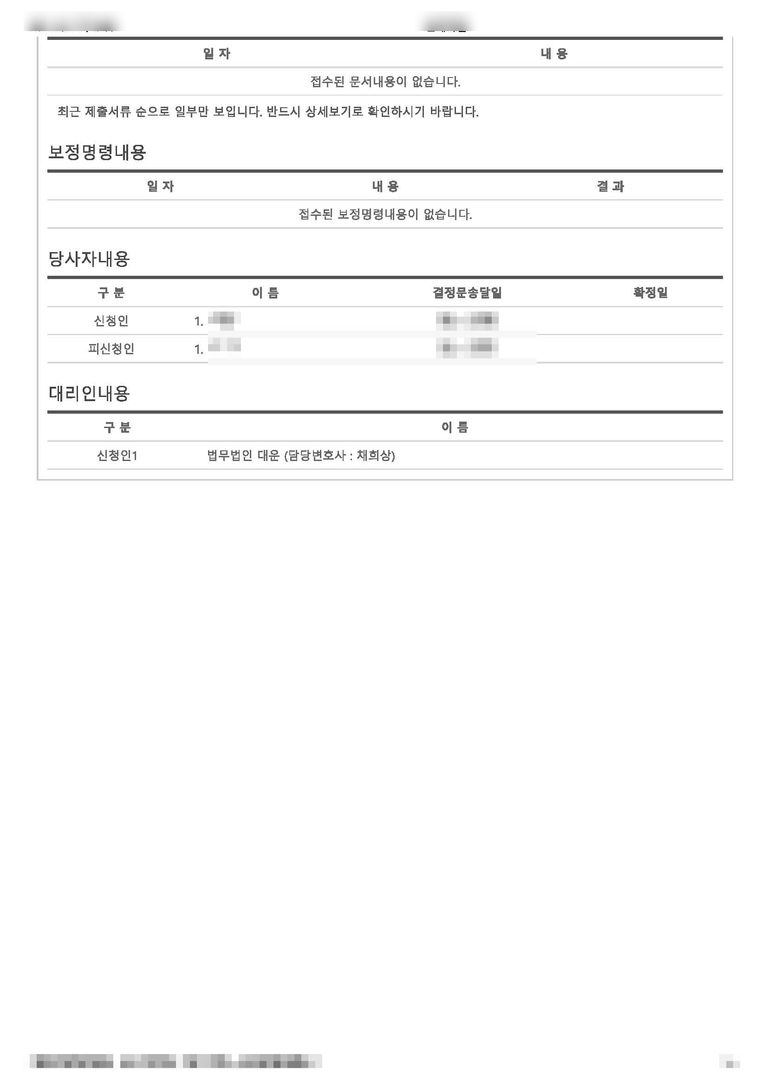 법원과 통화하여 신청서 접수 후 그 다음날 바로 결정을 받았습니다.