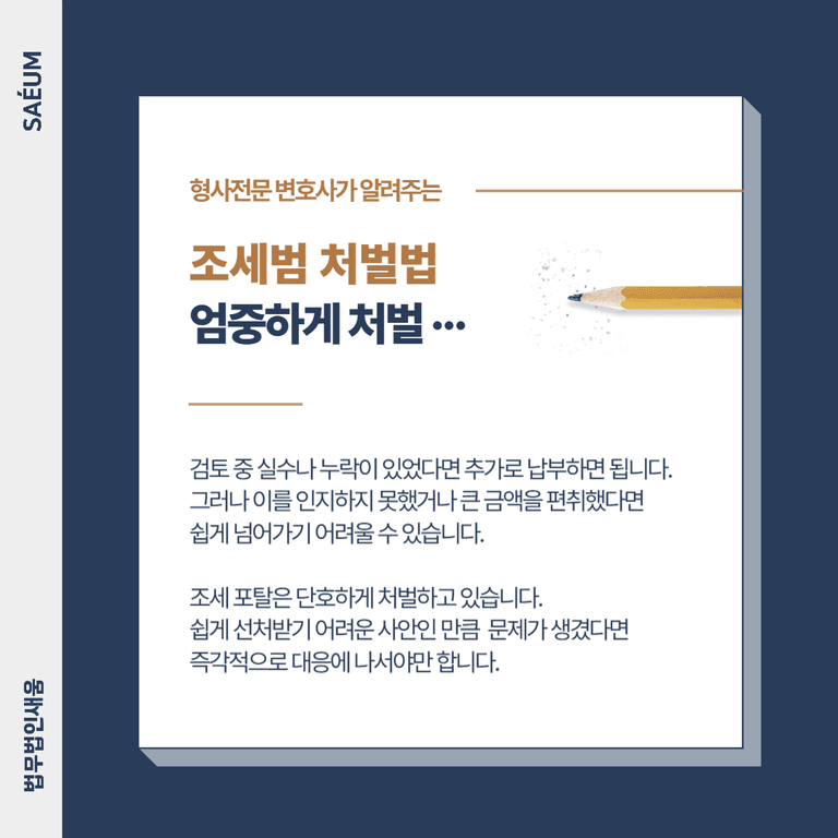 이렇게 처벌은 물론 이익을 본 것 이상의 과징금 처분이 내려올 수 있어 주의가 필요한데요. 잘못된 세금 납부로 인해 곤경에 처한 분들을 위하여 조세범 처벌법으로 인한 처벌과 선처 방안에 대해서 알아보도록 하겠습니다.