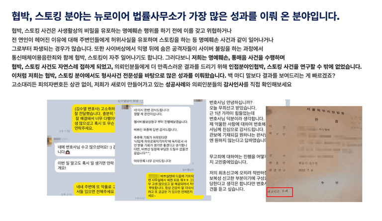 저희가 여러분과 같은 분들을 도와 스토킹 고소 대리를 도맡고 있기에 상황을 잘 이해하고 있는데요.