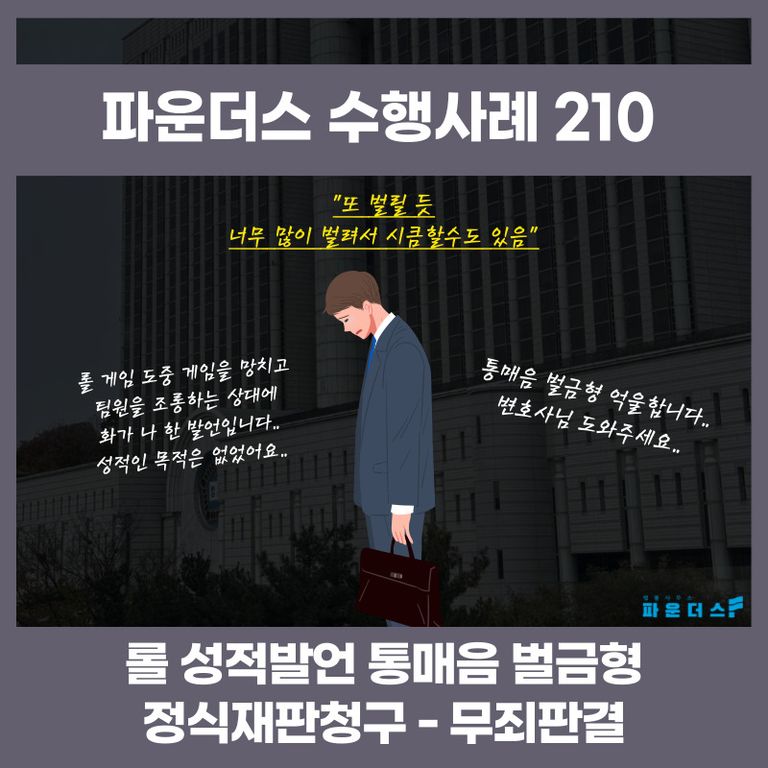 만일 의뢰인의 사건과 같이 온라인 게임을 하던 중 상대에 성적 발언을 하여 통매음 고소를 당한 상황이거나, 통매음 혐의에서 벌금형 처분을 받아 정식재판청구를 희망하는 상황이라면 빠른 시일 내에 변호인과 구체적인 내용을 살펴 대응책을 마련해 나가는 것이 바람직합니다.