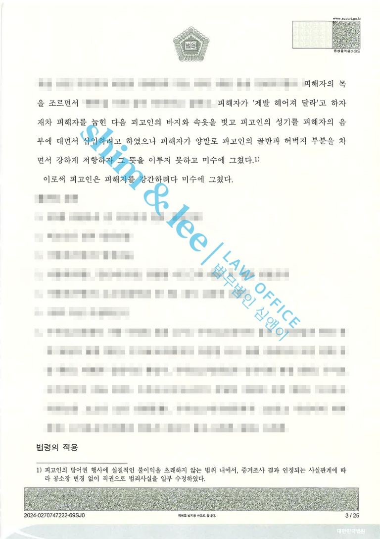 - 가해자는 곧바로 항소해 2심에서 강간미수 혐의에 대해 억울함을 호소하며 피해자의 진술이 일부 번복되었고 일관성이 없다고 주장했고, 본인은 단순히 이별을 받아들이지 못해 매달린 것일 뿐 성관계를 시도한 사실이 없다고 뻔뻔하게 무죄를 주장했습니다. 이에 담당 변호사님은 가해자는 약 1년동안 피해자를 스토킹하며 강간을 시도한 전형적인 데이트 폭력에 해당하며, 사건의 본질을 흐리고 피해자에게 추가적인 상처를 주었다고 지적했습니다. 또한 가해자가 수차례 합의를 제안하며 때로는 강간미수 혐의를 인정하는 태도를 보인 점도 언급하며 재판부에 항소기각을 요청했습니다.