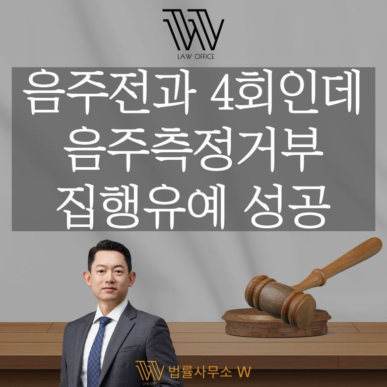 이렇게 오늘은 음주전과 4회인 상황에서 측정거부까지 하여 구속 가능성이 높았지만, 법률사무소 W와 함께 최선을 다하여 다시 집행유예를 선고받고 실형을 피한 케이스를 말씀드렸습니다.