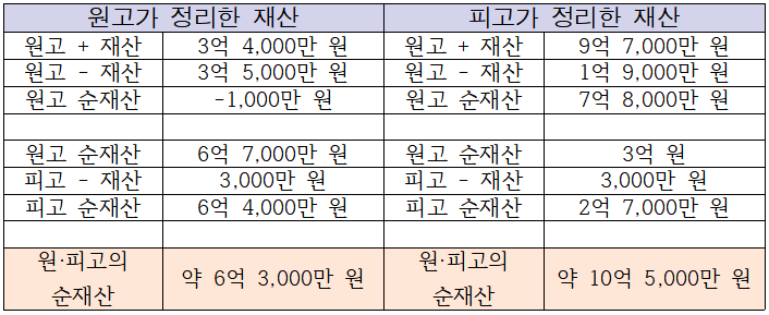 1. 원고와 피고의 재산 정리 비교