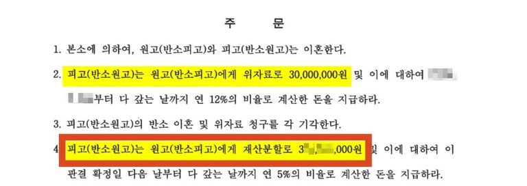 오늘은 서로가 수 억 원의 돈을 받겠다고 한 사건에서, 판결문과 98% 이상 일치하는 재산 정리를 바탕으로 피고의 청구를 전부 기각시키고 위자료 3,000만 원과 3억 대의 돈을 확보한 사례를 말씀드렸는데요.